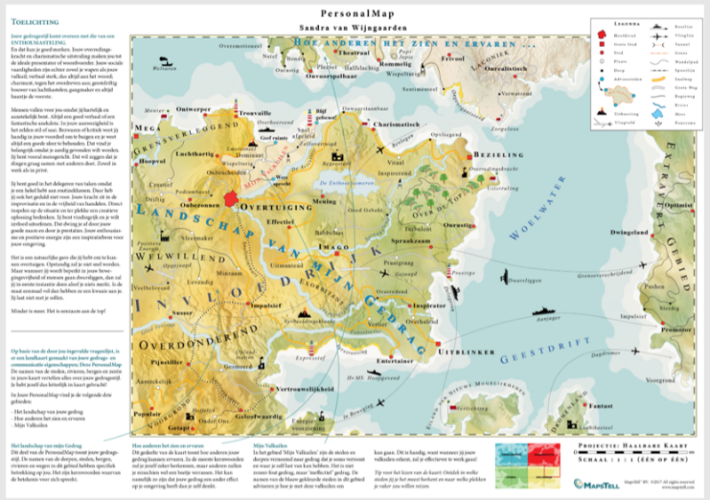 In de wereld van verschil van Mapstell worden individuen, teams en organisaties letterlijk op de kaart gezet. Met deze op associatieve geografie gebaseerde kaart in de hand start je jouw reis die je brengt naar het optimaal benutten van jouw talent, betere samenwerking en effectieve teams. Jouw individuele doelen of organisatiedoelen zullen hierdoor beter behaald kunnen worden. Als Mapstell guide kan ik je begeleiden en coachen, individueel of als team.
